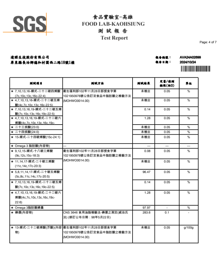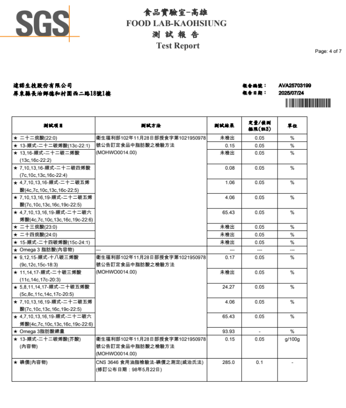 其中Omega-3脂肪酸含量相較之下還是遠低於達諾高濃度後的魚油